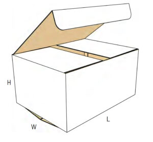 Las cajas con solapa se componen básicamente de una sola pieza con una junta engomada o grapada y con solapas superiores e inferiores para su cierre con cinta adhesiva.